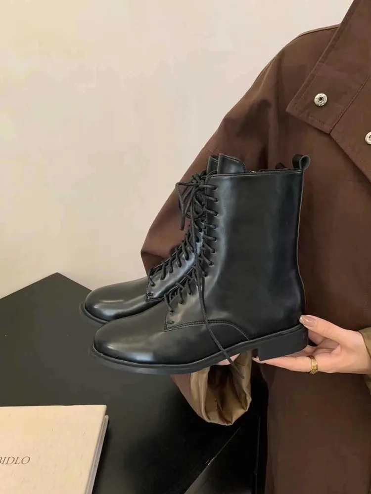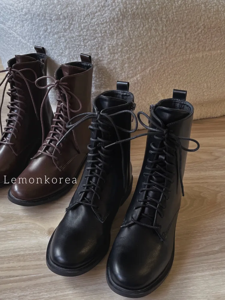 M37 英倫感綁帶低跟中筒靴 23.5-25