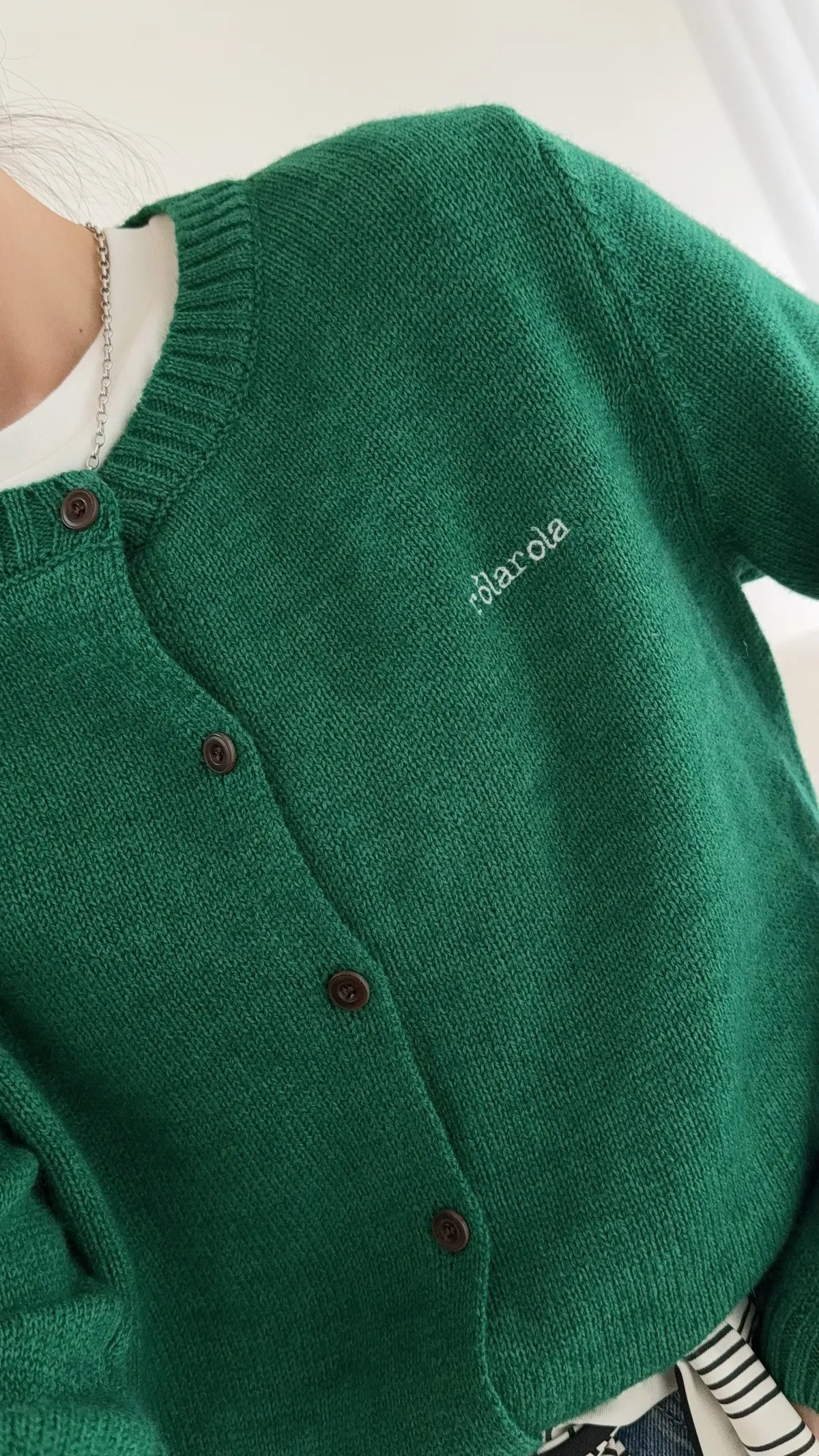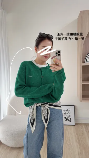 A12 完美版型刺繡字母針織排扣上衣 綠