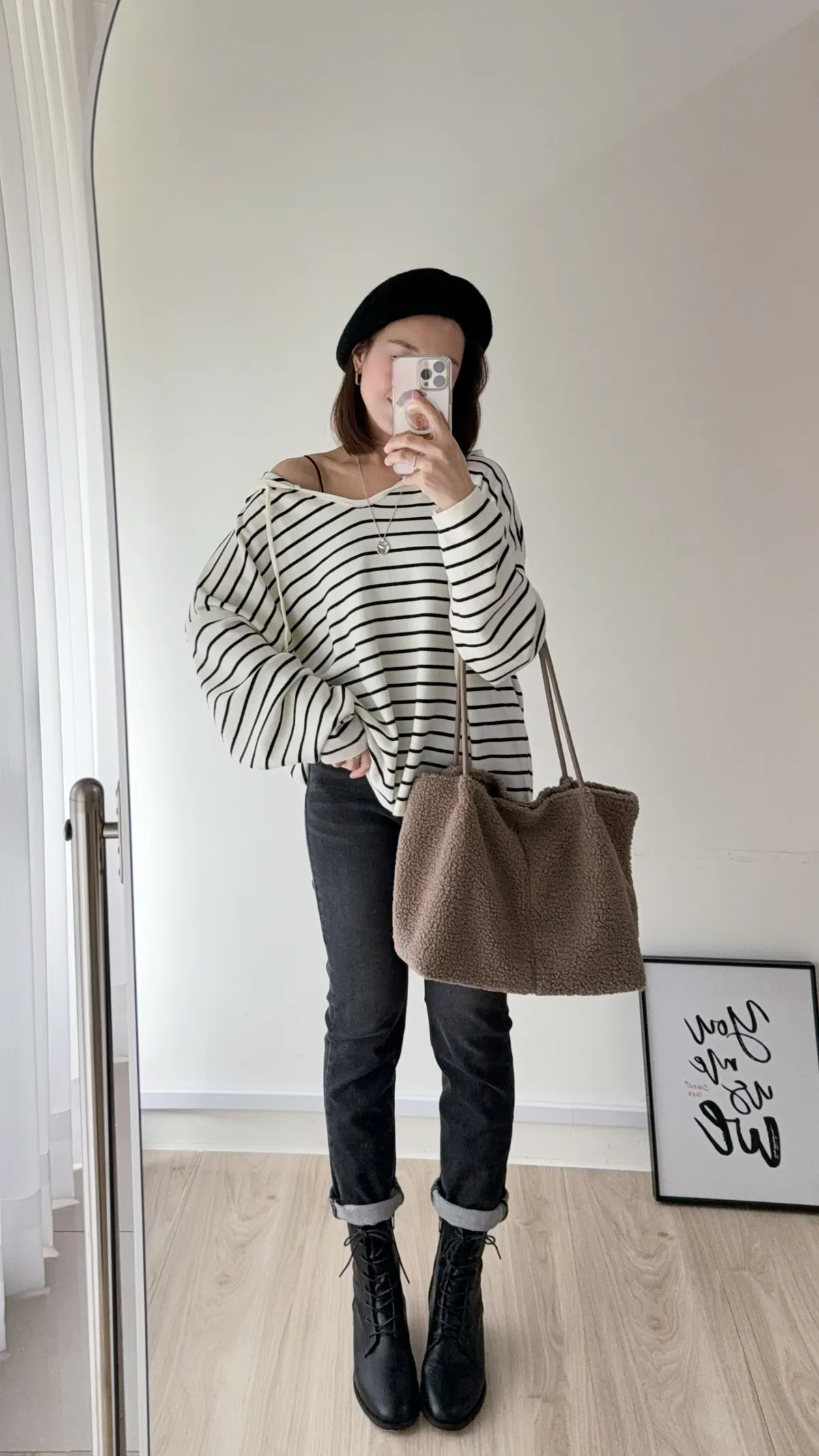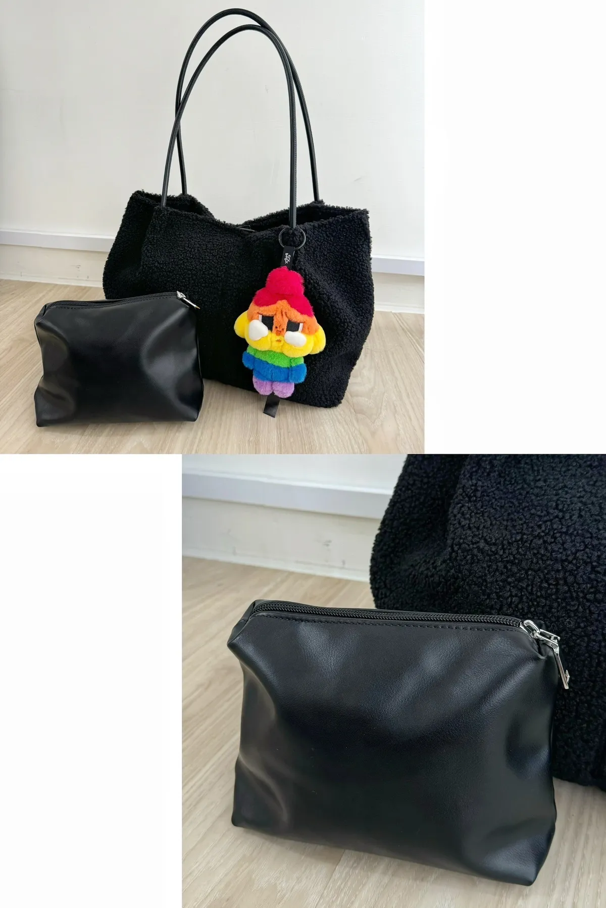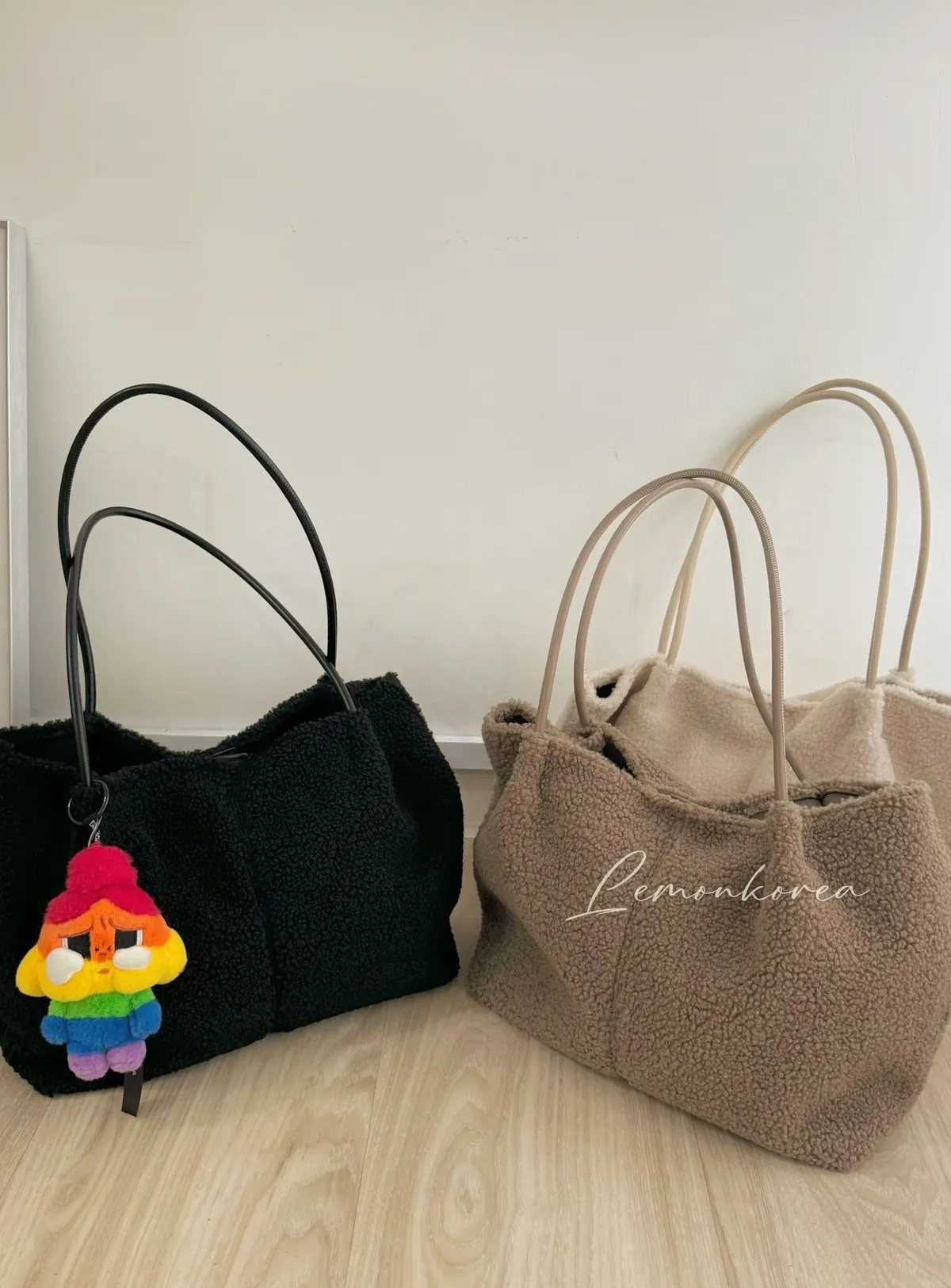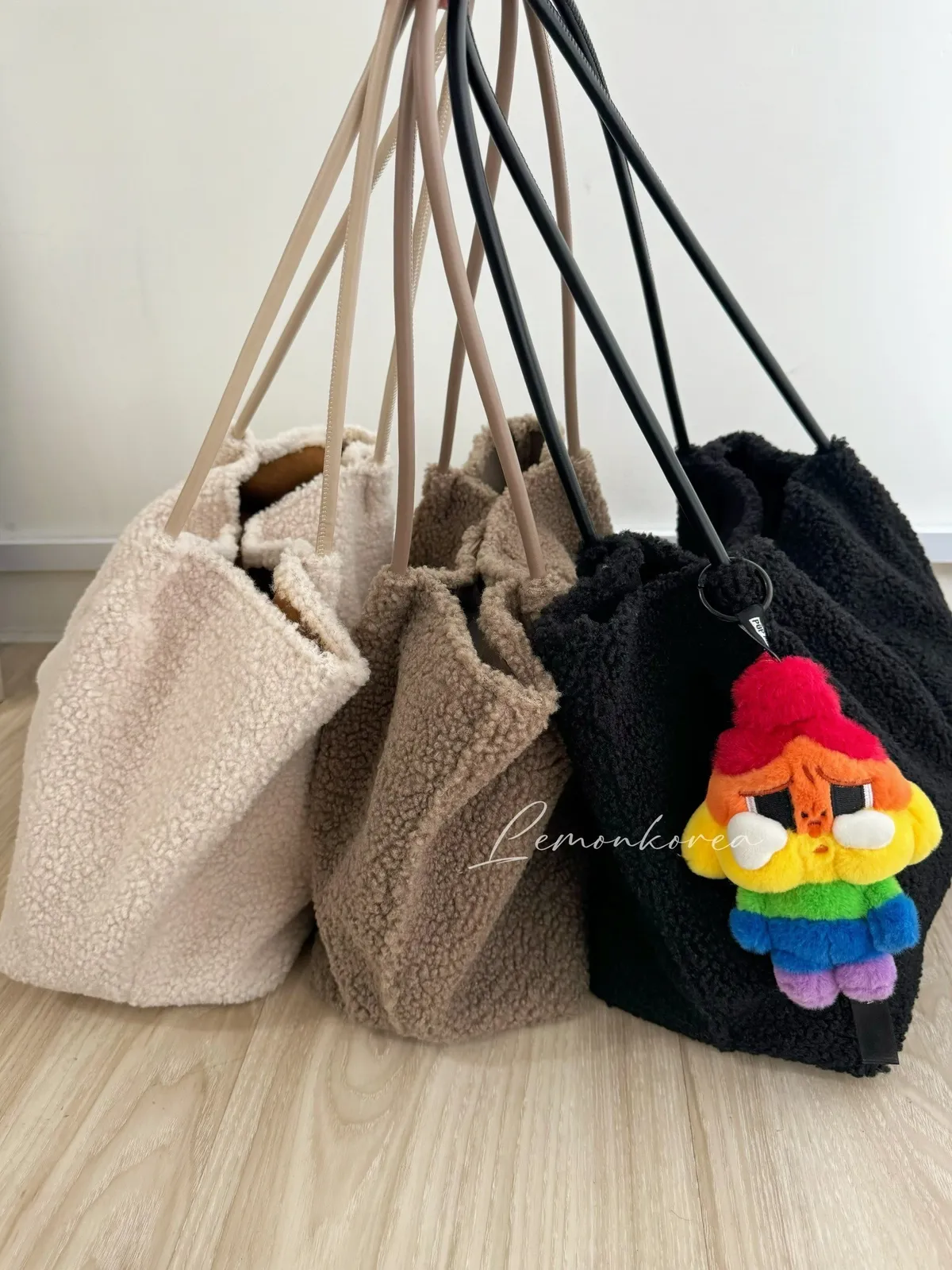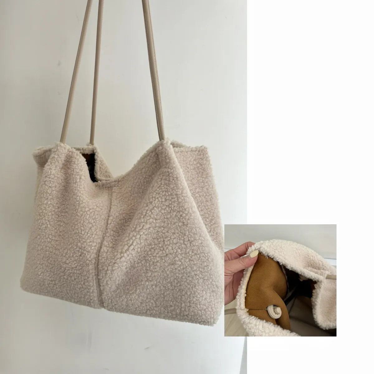 A44 泰迪毛毛大容量肩背包 奶白/摩卡/黑