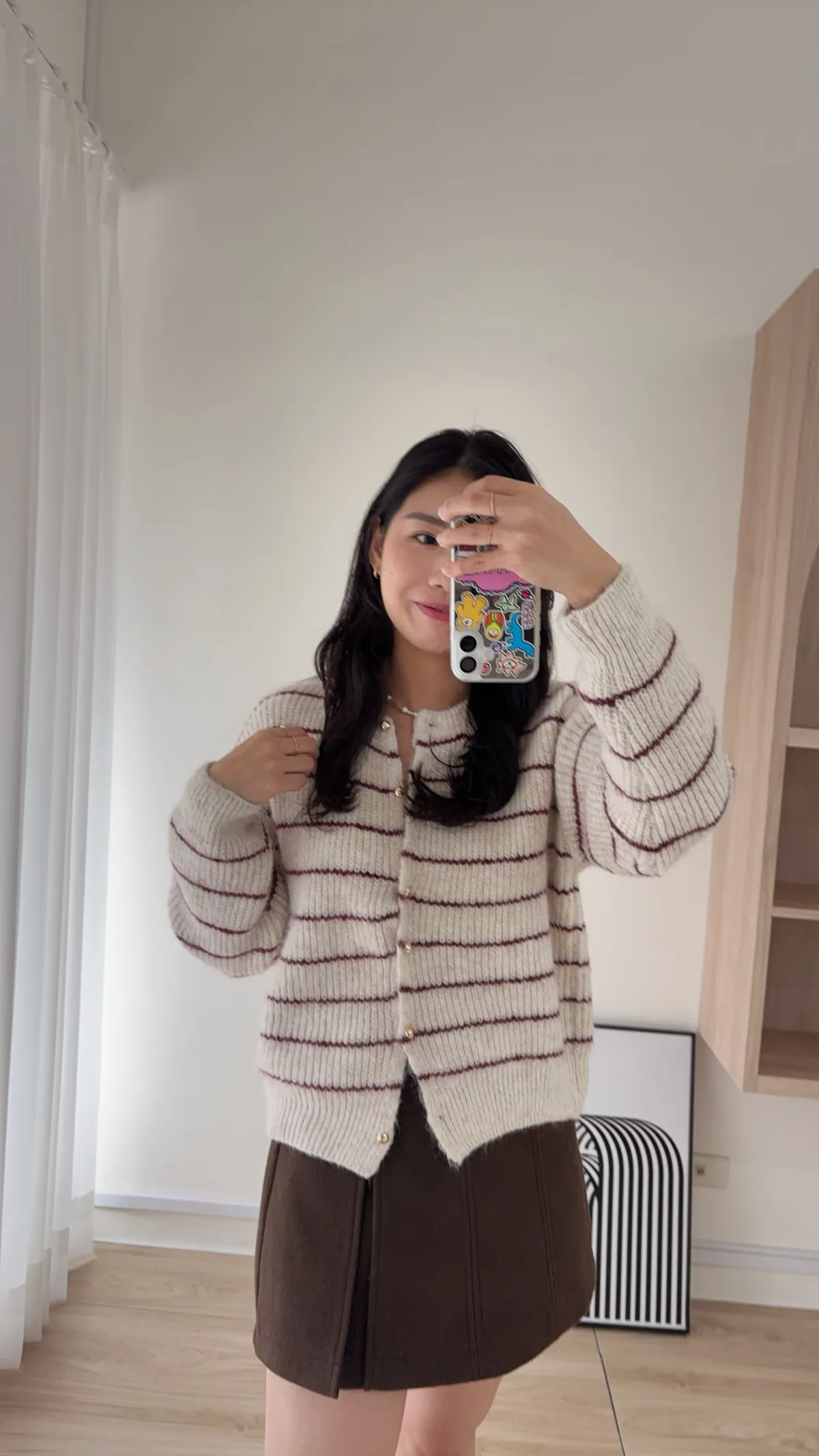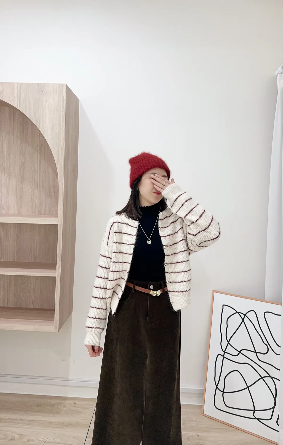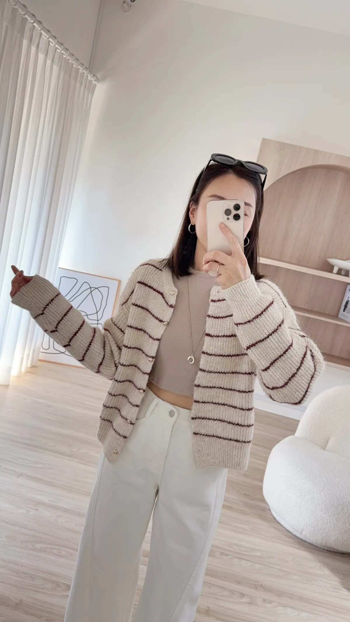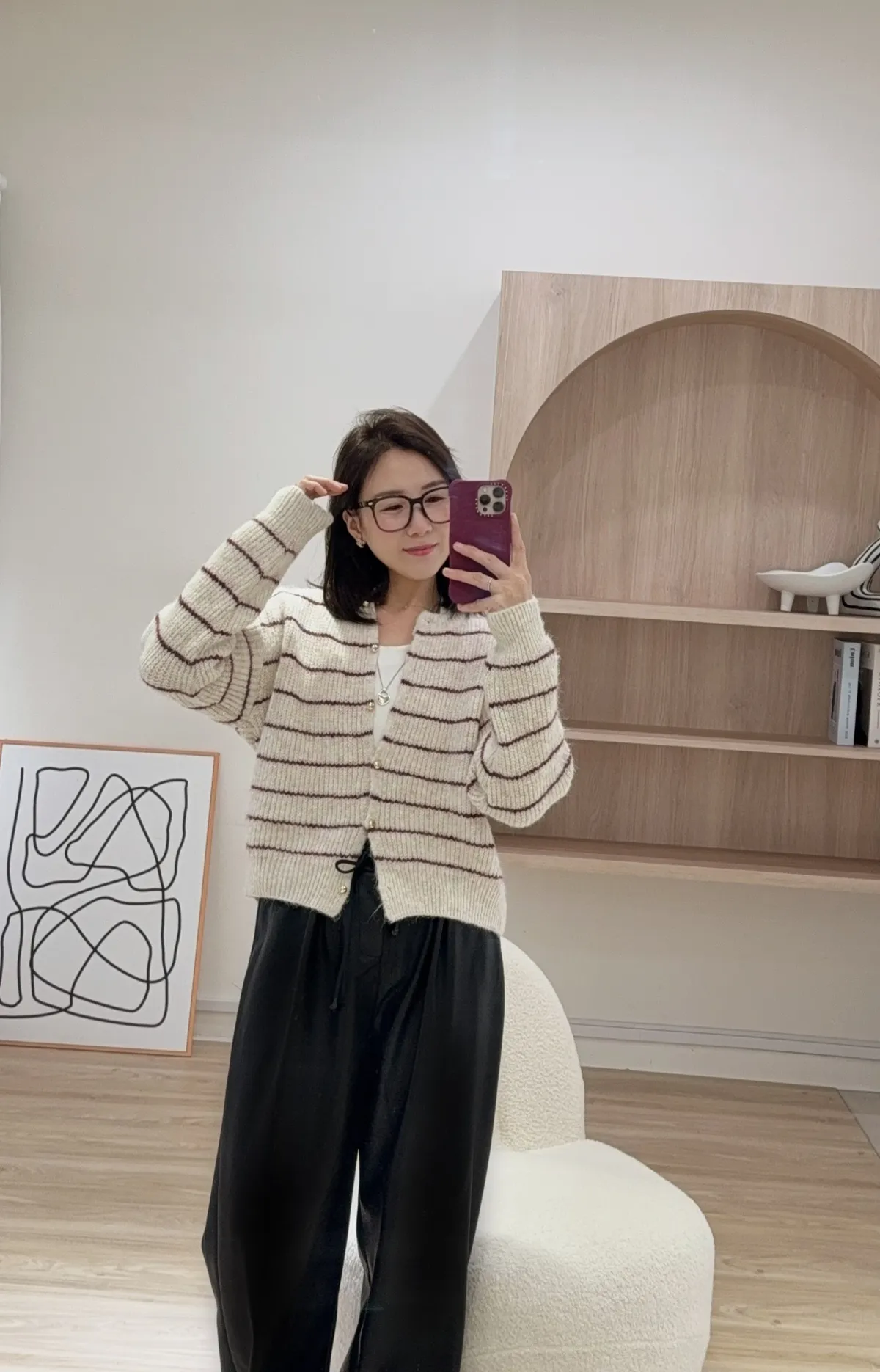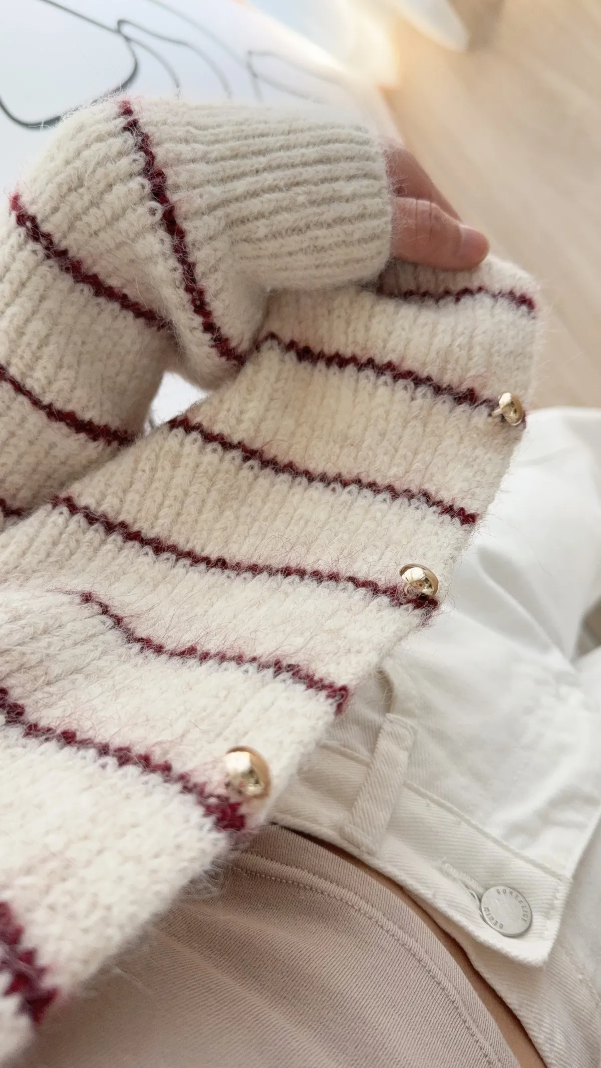 毛針織料 我們都太愛這件條紋針織衣了❤️ 小細節~金釦點綴亮眼 真的很難讓人不看見它耶!! 耐看的細線條紋設計更顯視覺顯瘦 材質鬆軟不紮膚 擔心女孩可以內裡再加件衣服打底 順身感不貼身的版型 長度剛剛好俐落有精神 除了當上衣穿也可以全開扣當小外套 亮眼顯色紅條紋好難讓人抗拒 這件肯定是要收進衣櫃啦~