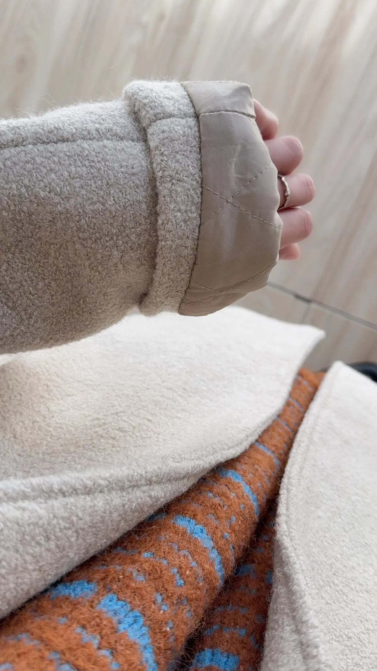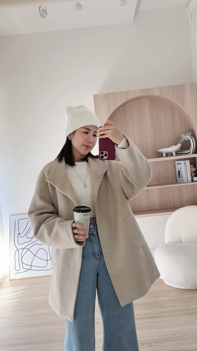 毛呢拼接鋪棉 (整件內裡鋪棉)來了!!太多人問這件大衣穿上身 馬上擁有帶回家耶 內裏就算搭厚衣服也沒有問題唷~溫柔杏色 絕對是首選!中長版長度可以蓋臀 小隻女也超適合大翻領口 微微澎不緊貼手也很足夠塞寬袖的衣服兩側貼心還有口袋🤗價格比起市面上實在太甜完全不需要多加考慮有喜歡的女孩 就要趕緊手刀加購物車🛒