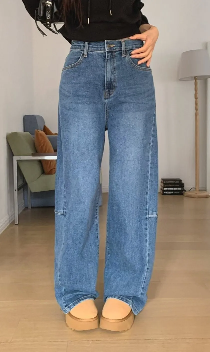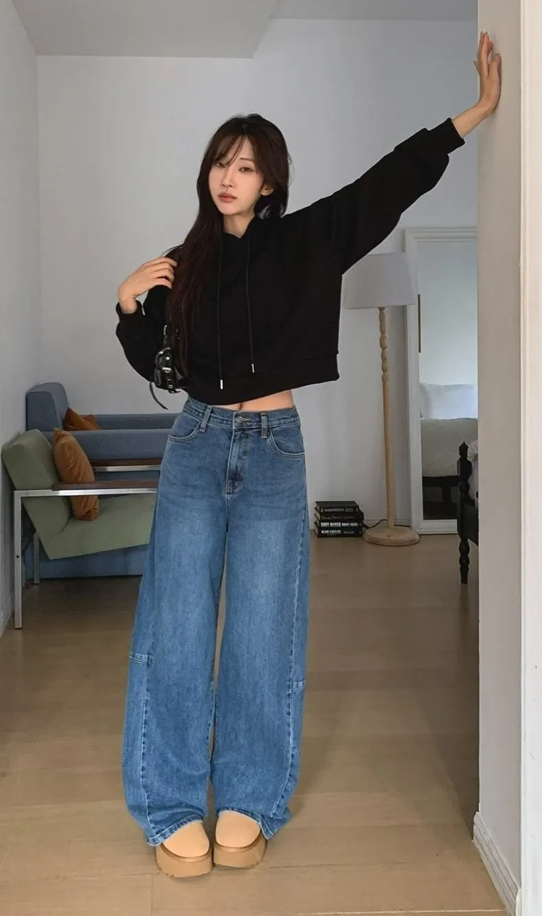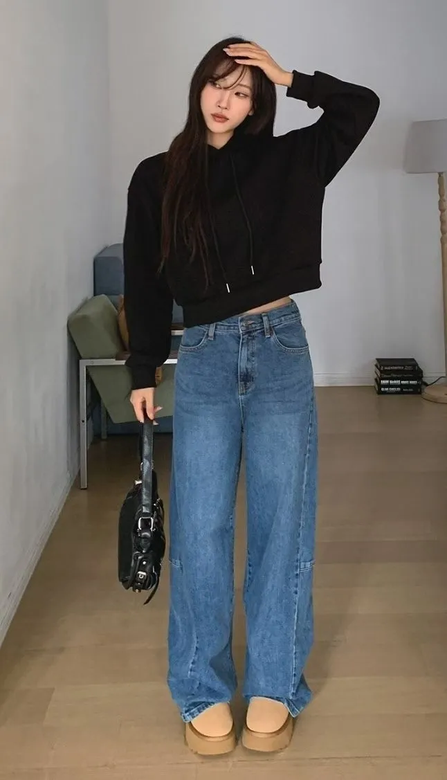今年一定要有一件闊腿直筒牛仔褲啊~
