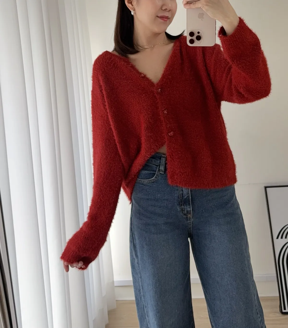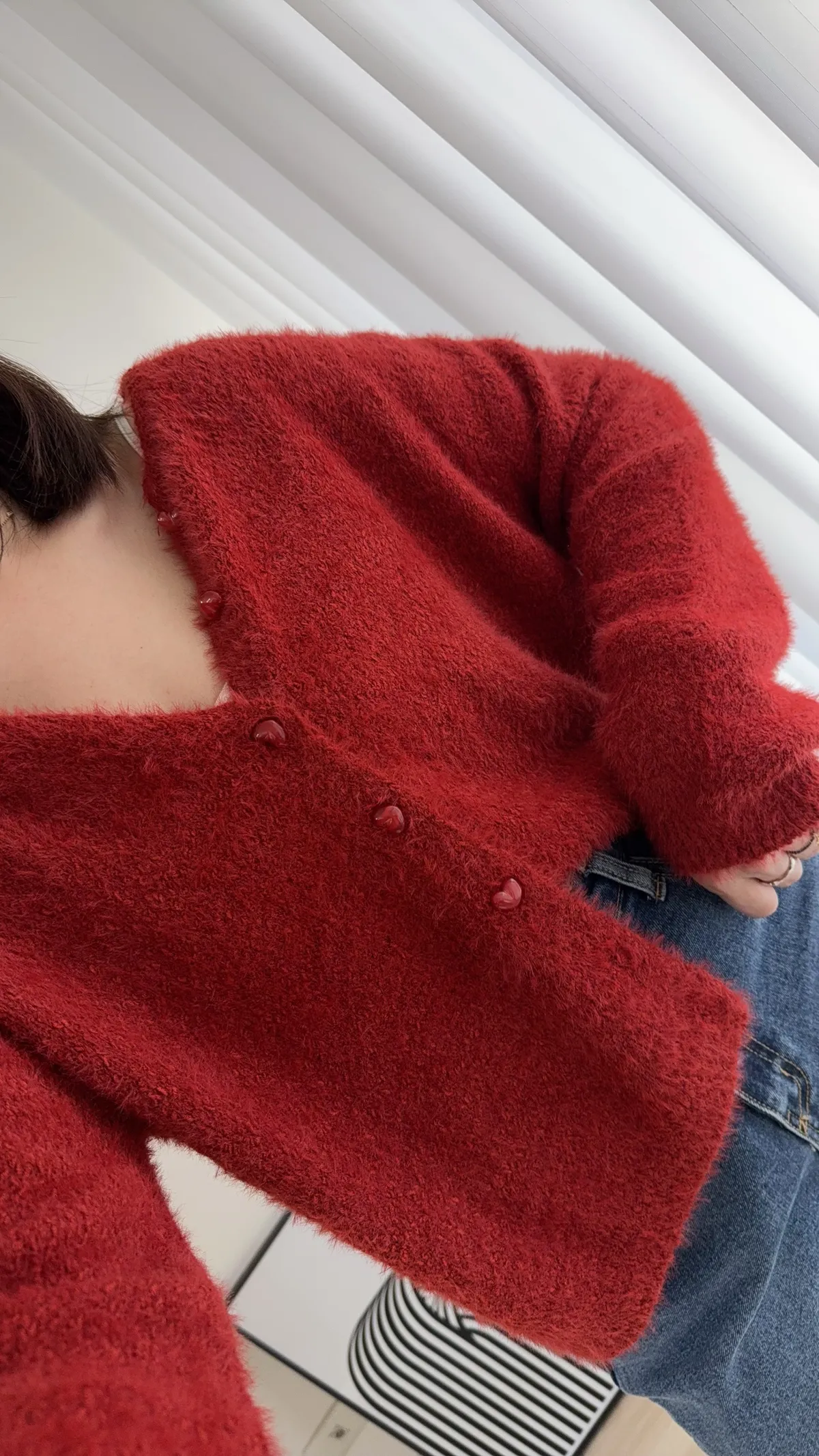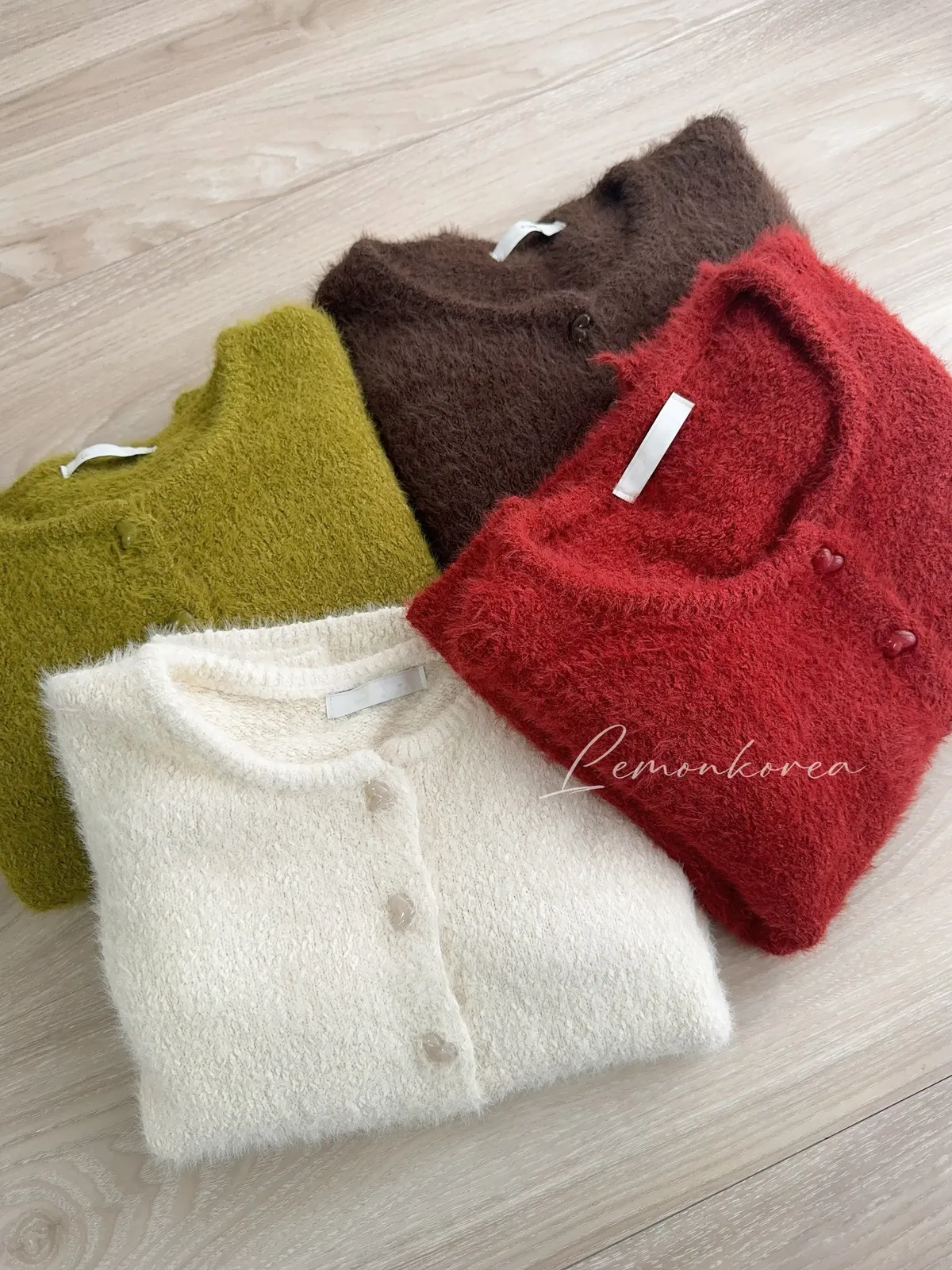 C50 愛心果凍釦毛海開襟外 三色