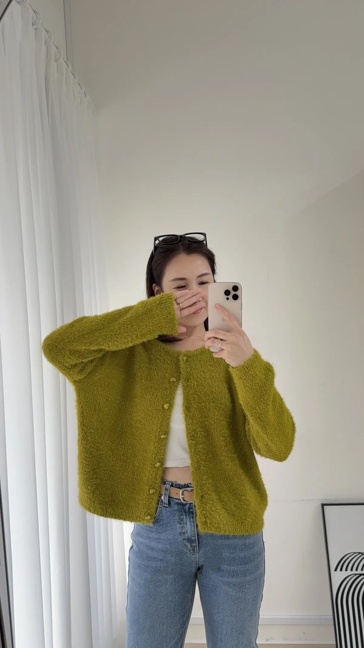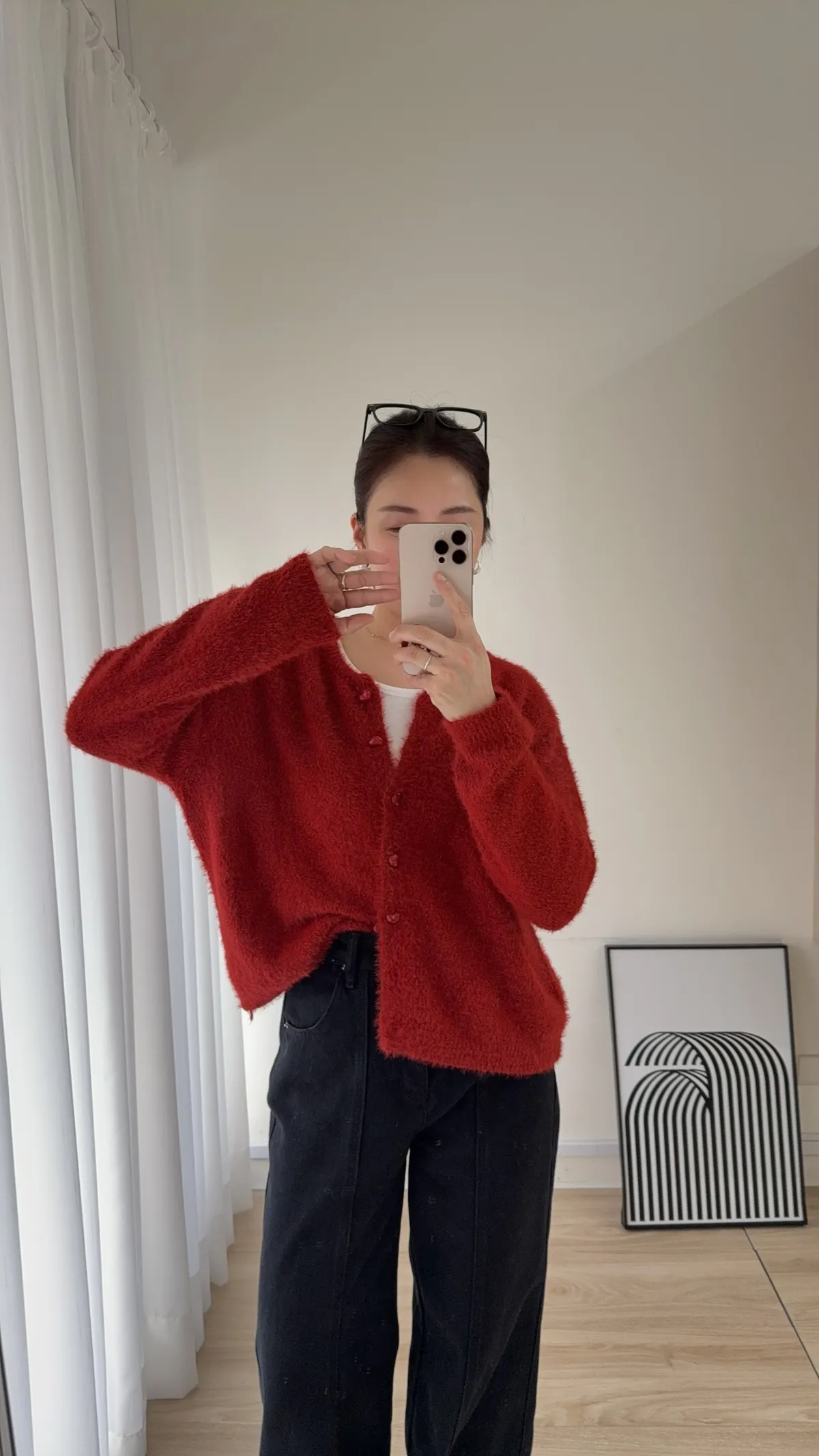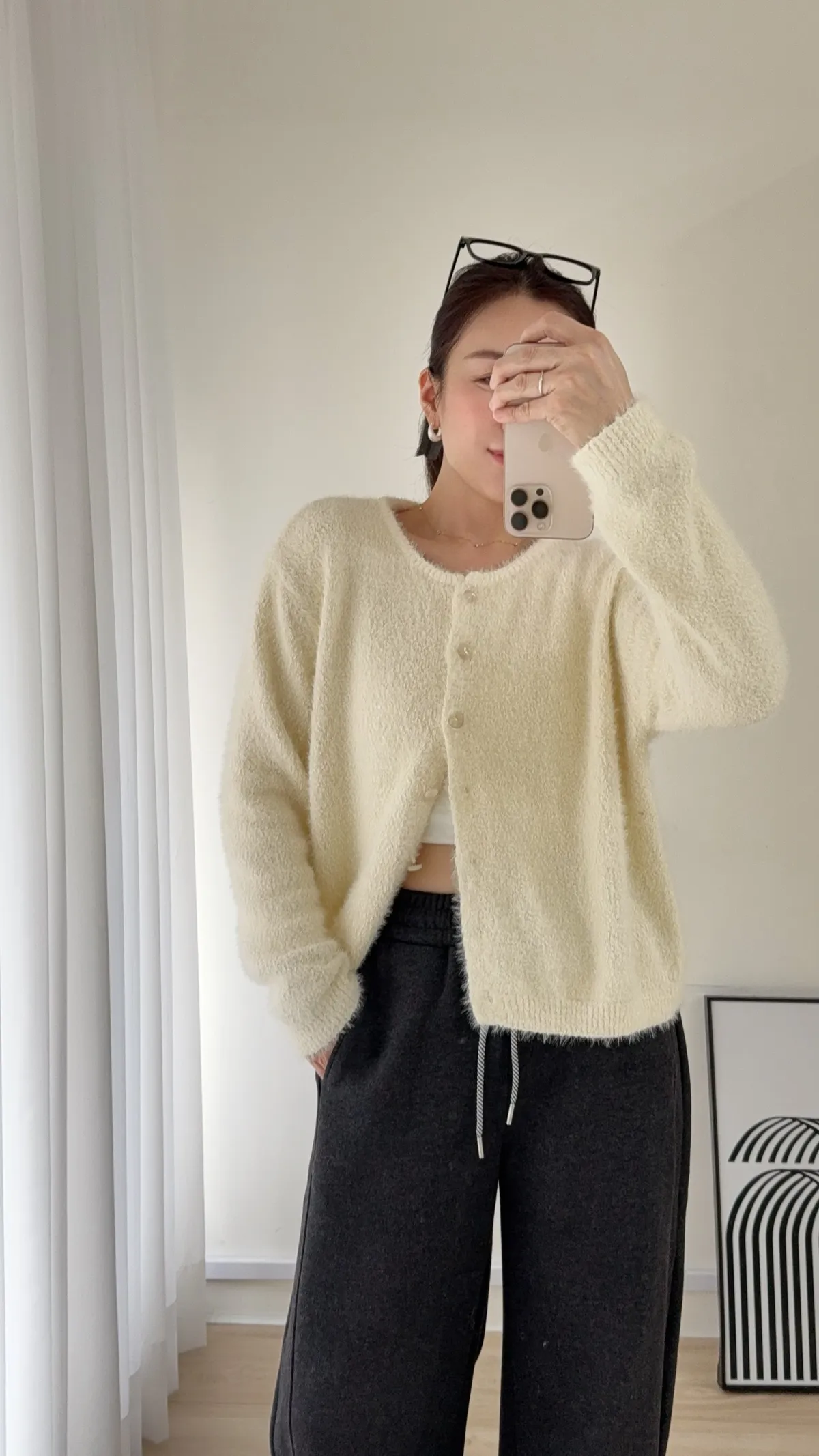 C50 愛心果凍釦毛海開襟外 三色