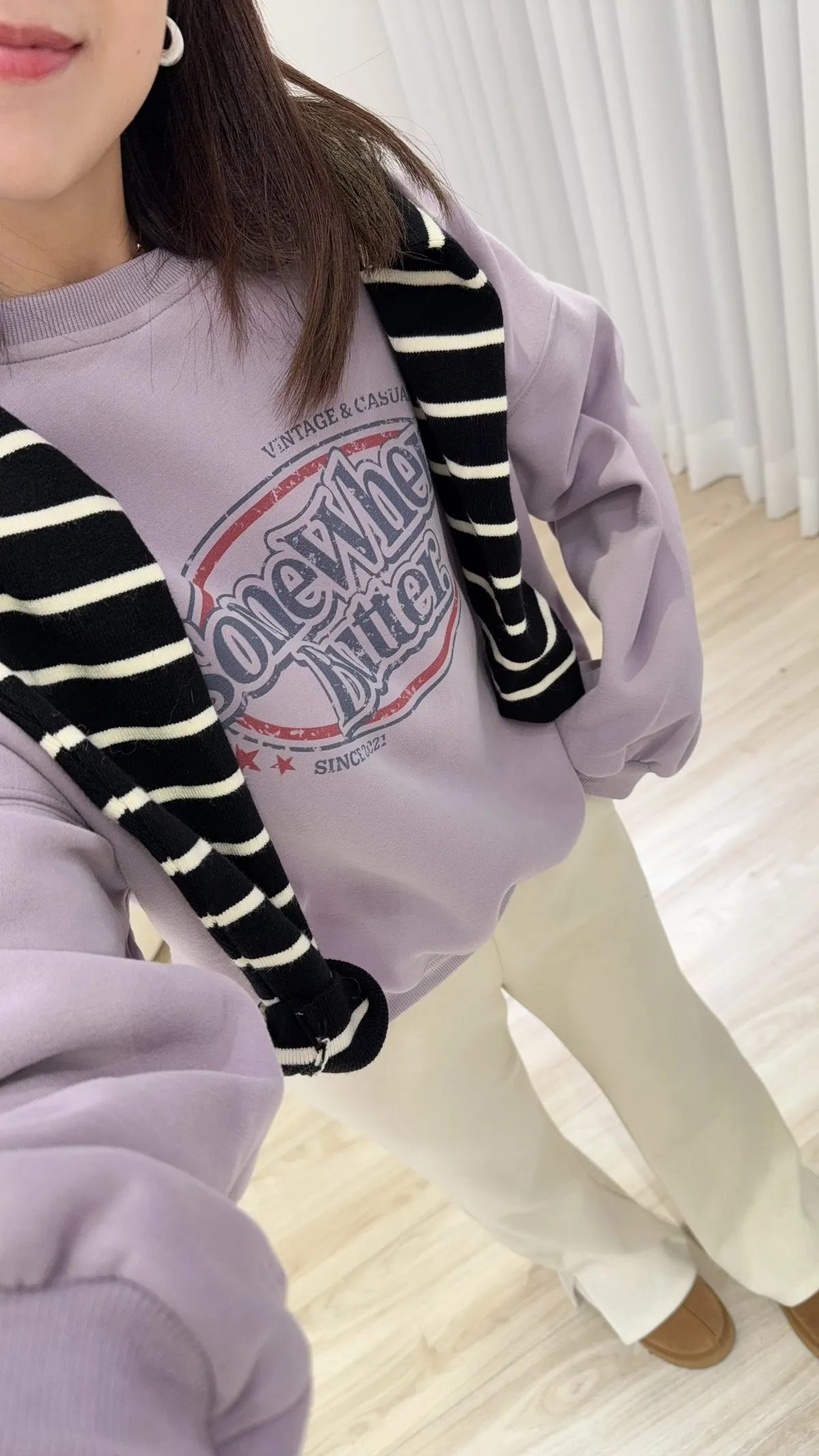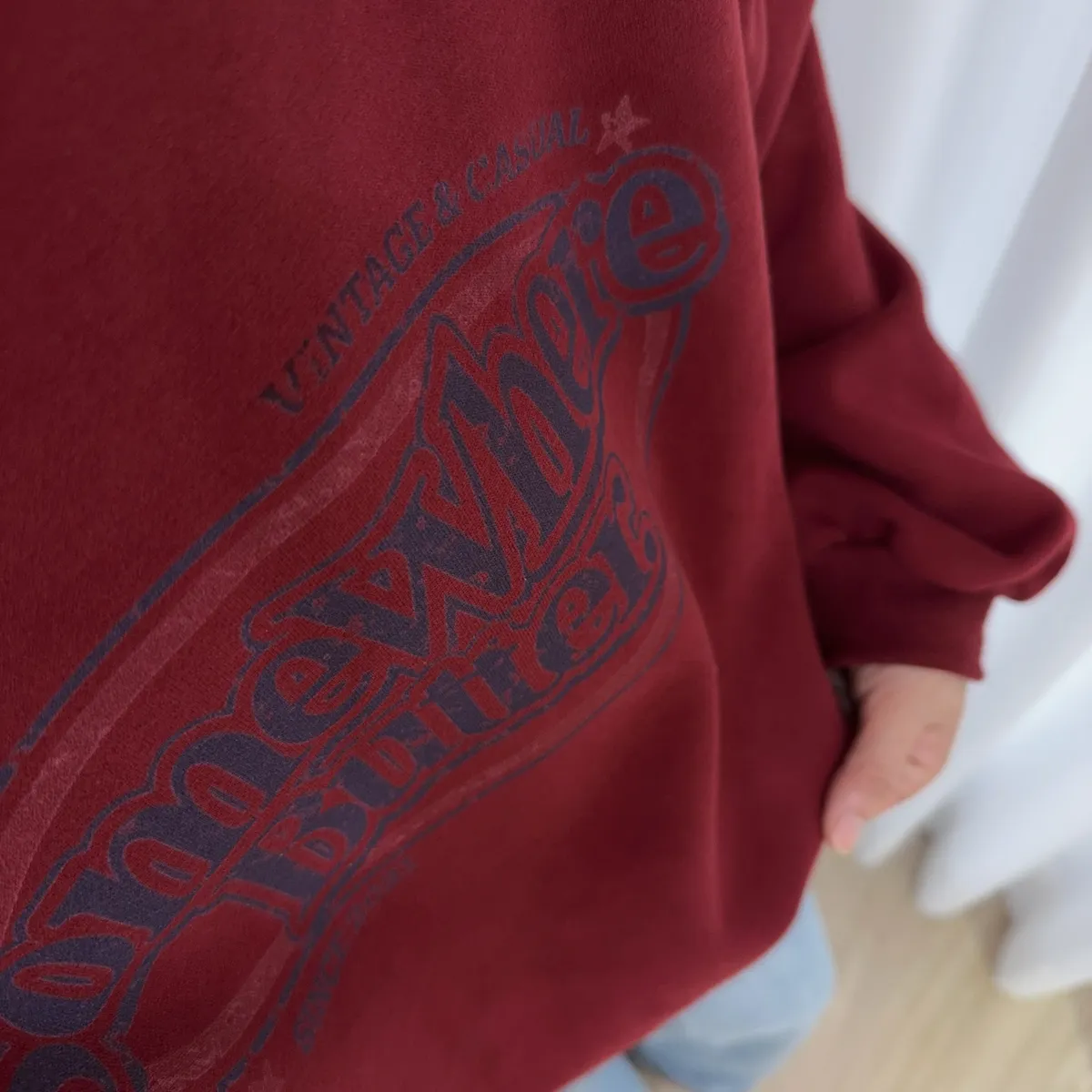 這件洗舊感配色字大學tee有夠好看 很美式風 整個就很難讓人抗拒 材質也是好舒服 不是毛線圈 相對的沒有刷毛穿起來也不會覺得厚實感 正常版型及長度!!!! 落肩、微澎袖不貼身不貼手臂肉 下擺彈性也不會內縮腰 如果穿搭視覺想要再長一點 你們可以內搭一件白tee疊穿 一樣好看