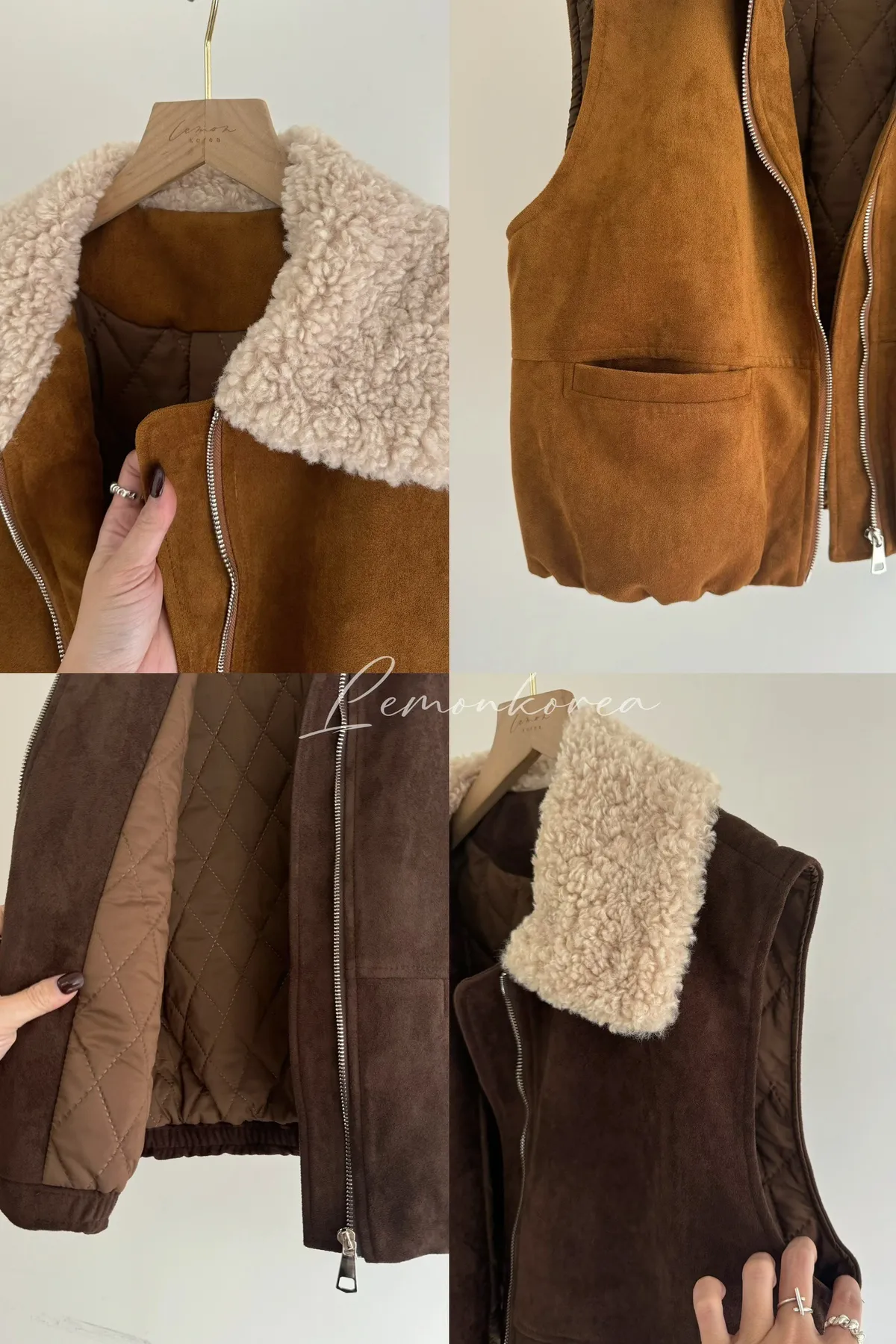 D15 毛領麂皮鋪棉被心 焦糖/咖