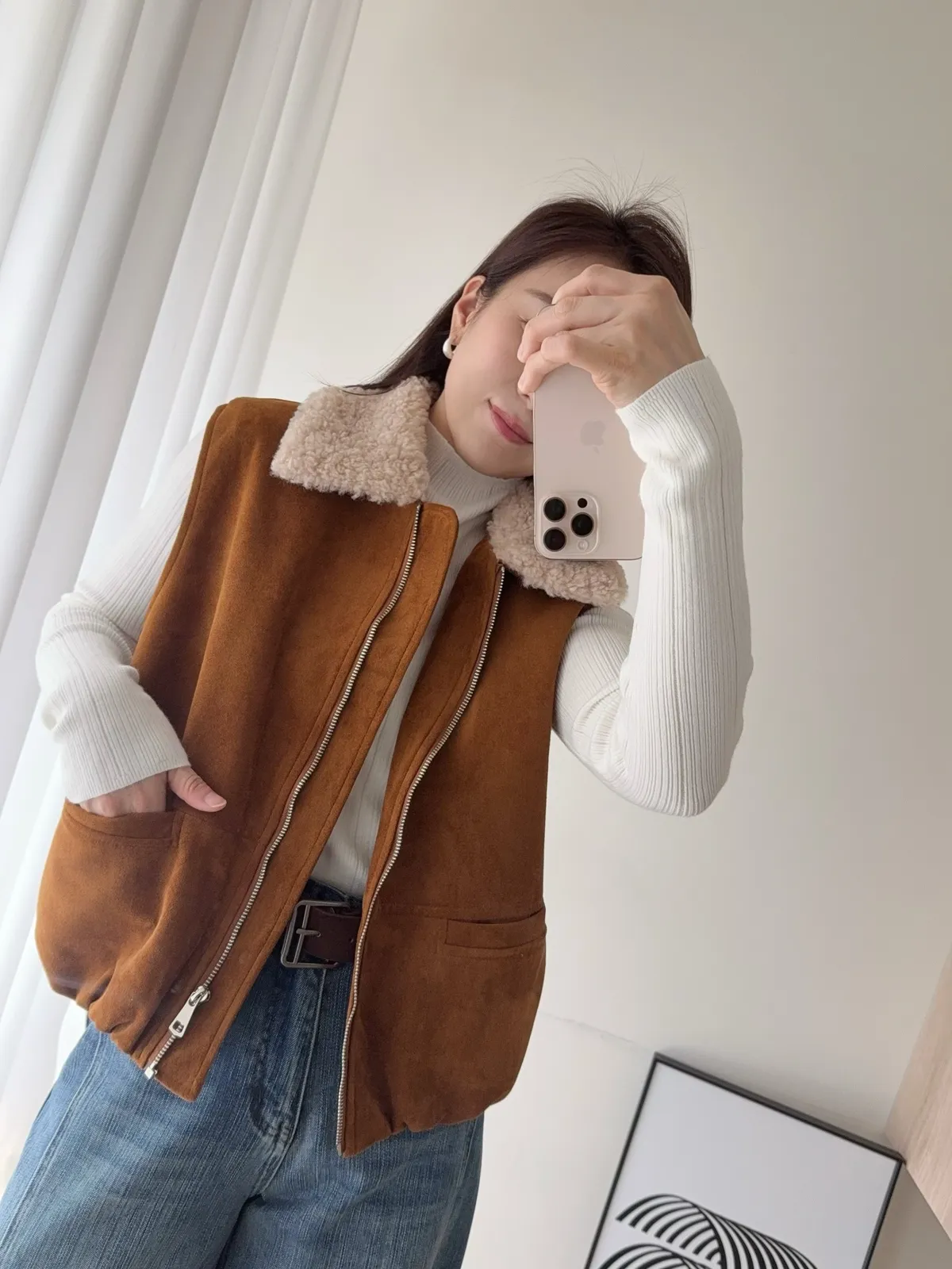 毛領拼接麂皮
