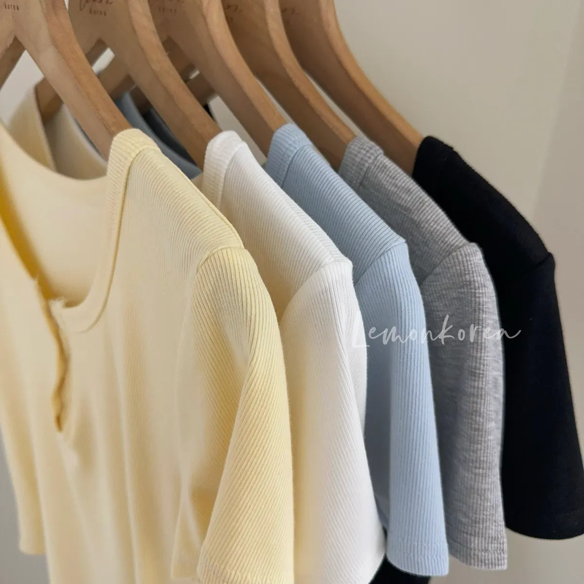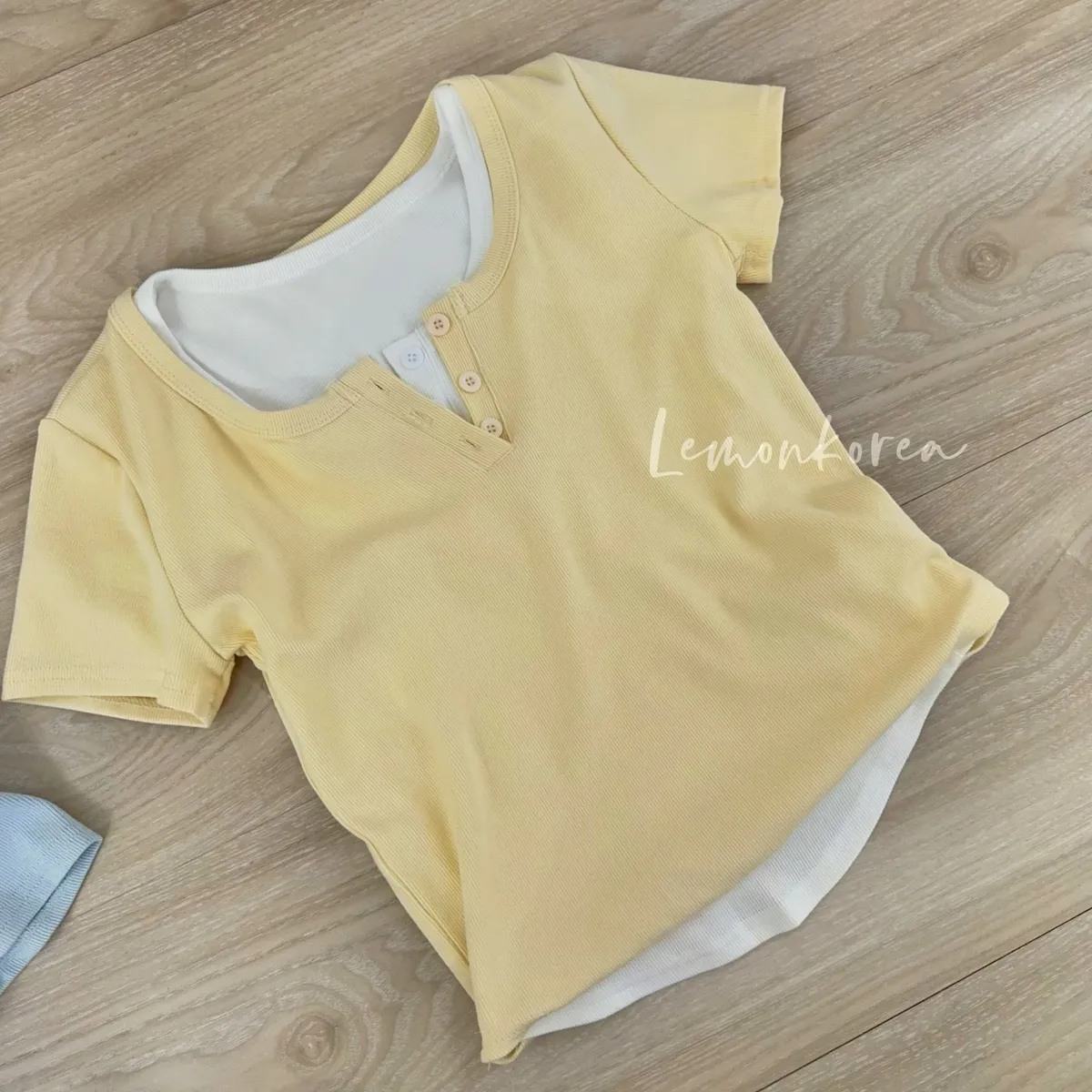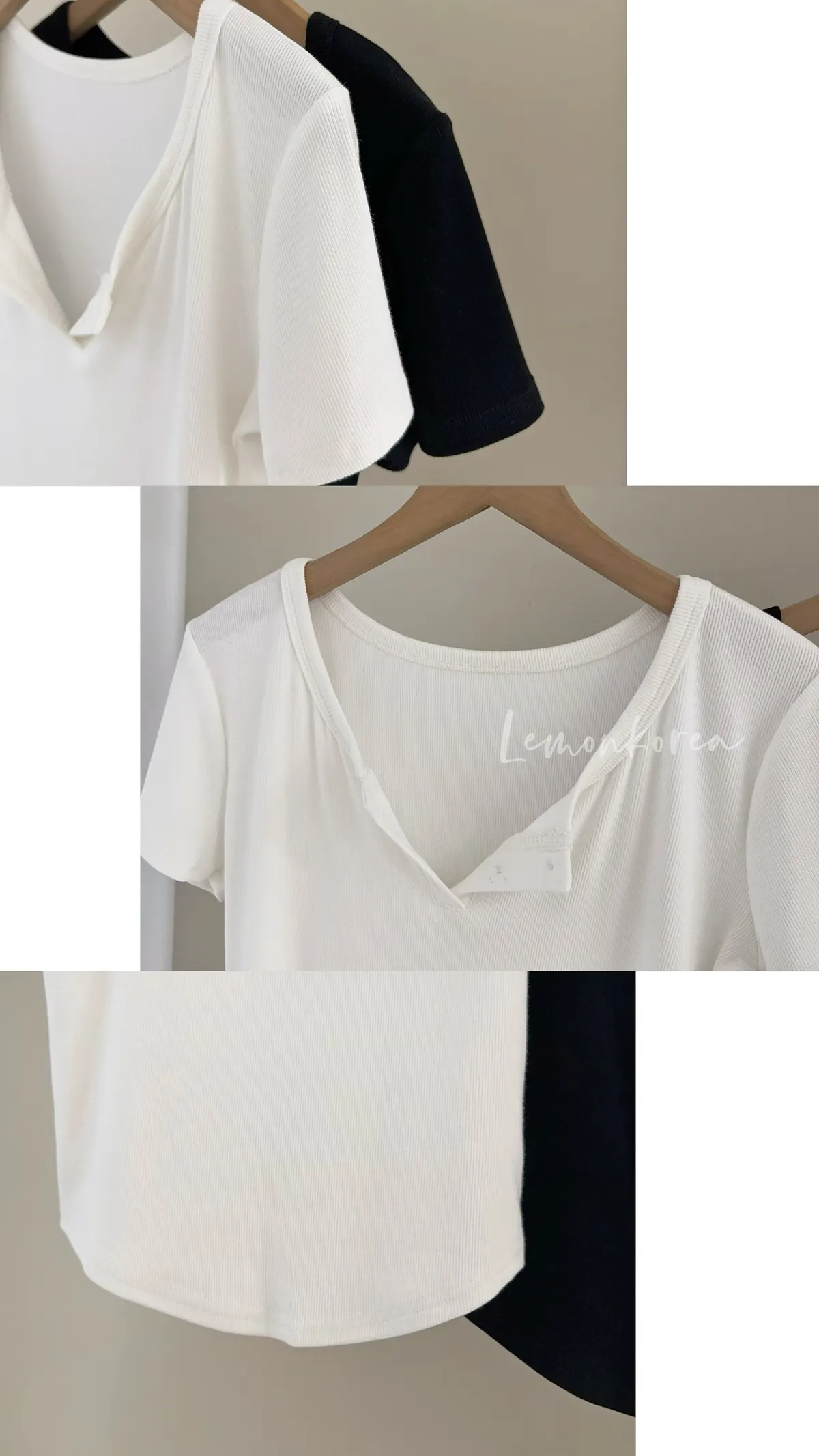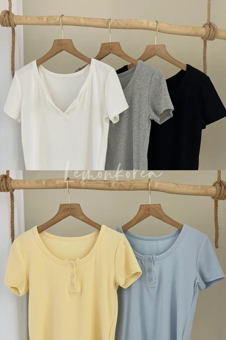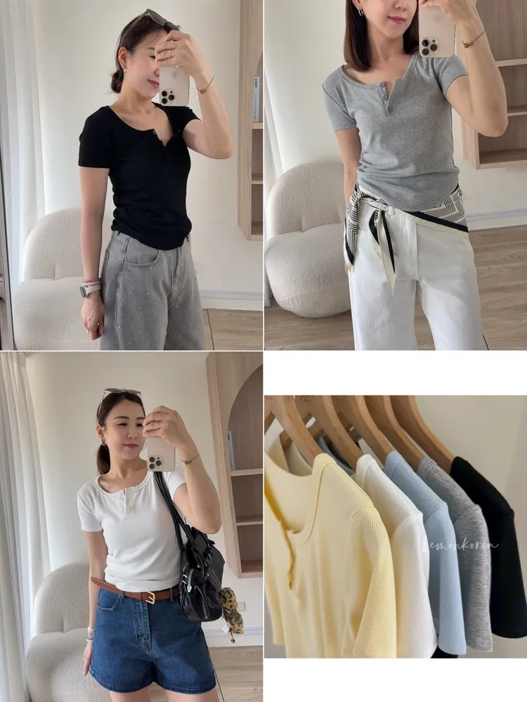 F40 版型好瘦!三釦圓領羅紋短袖上衣 四色(藍現貨)