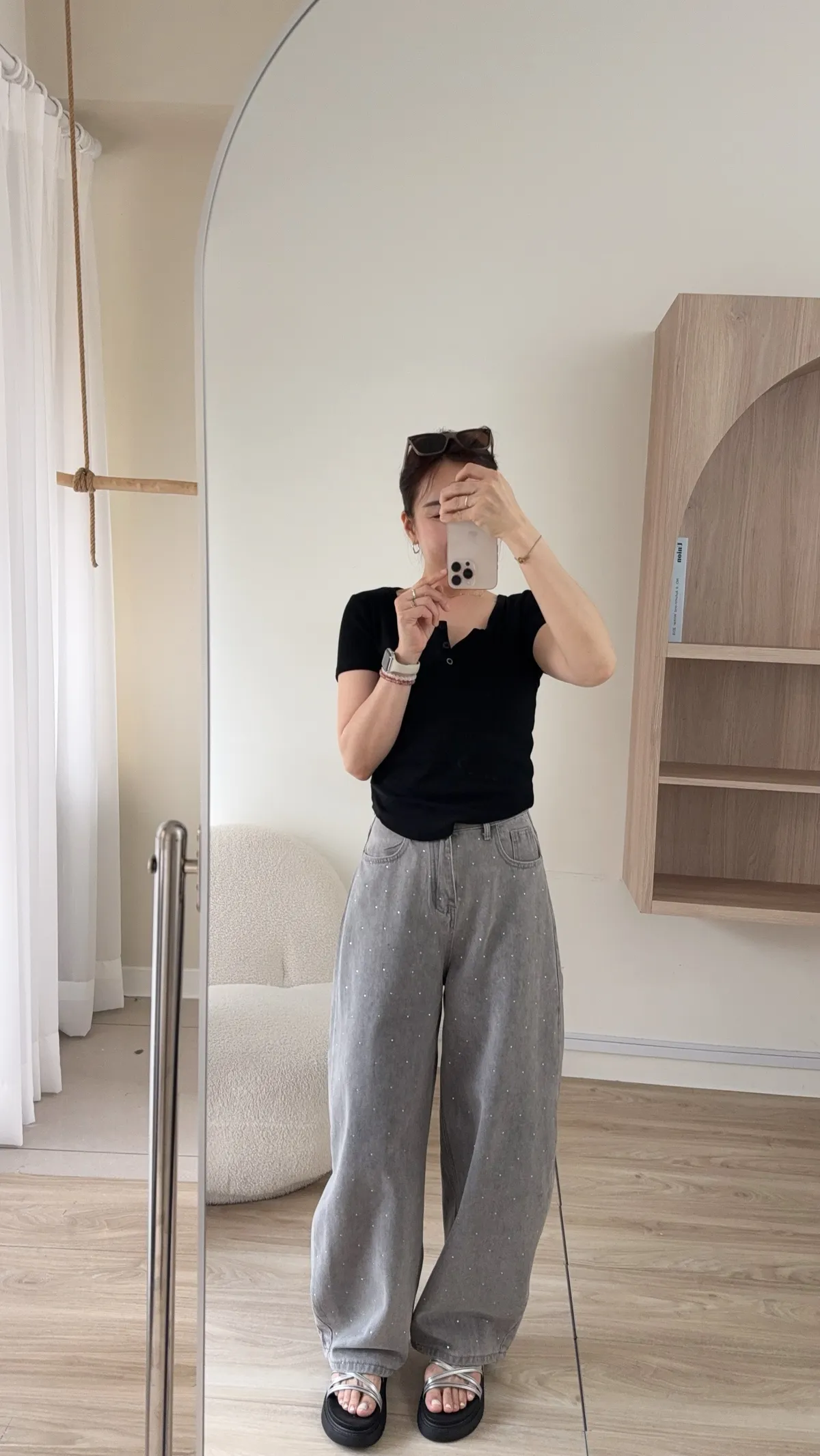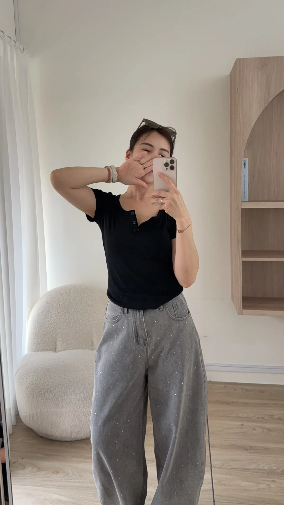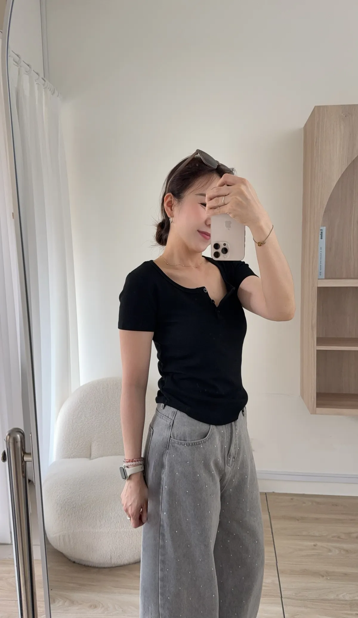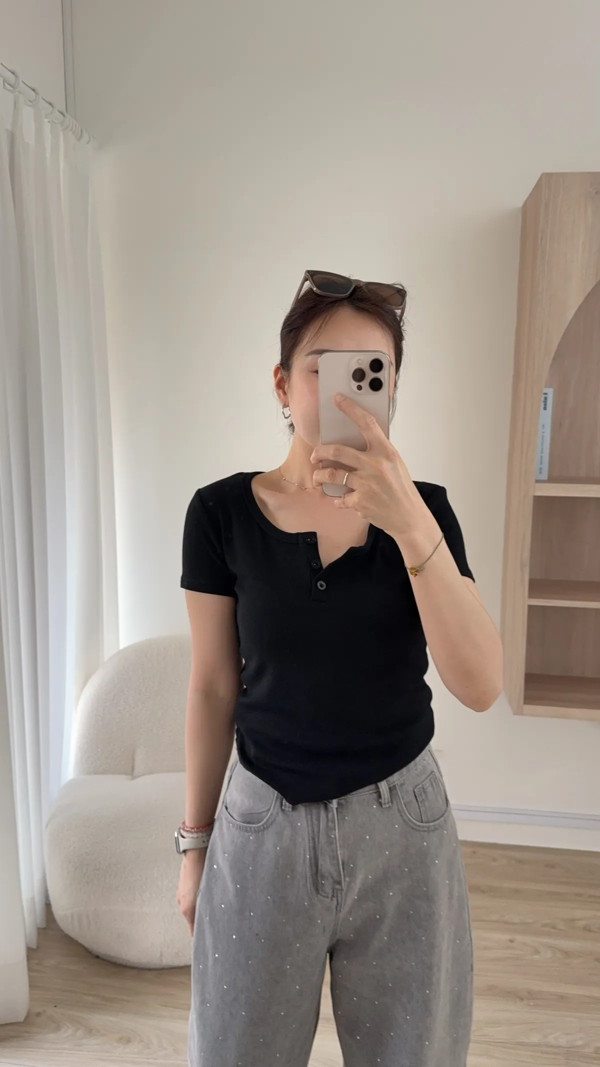 領口三釦設計 想要全開釦也可以唷!!