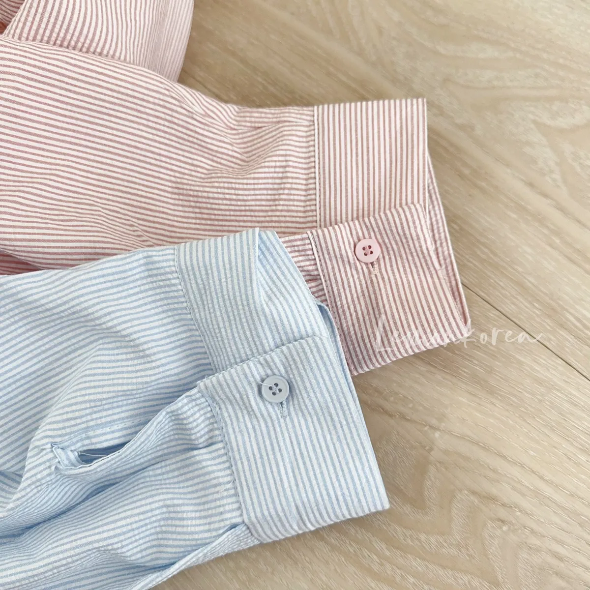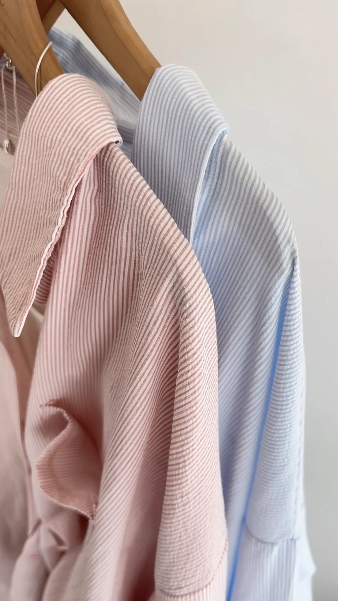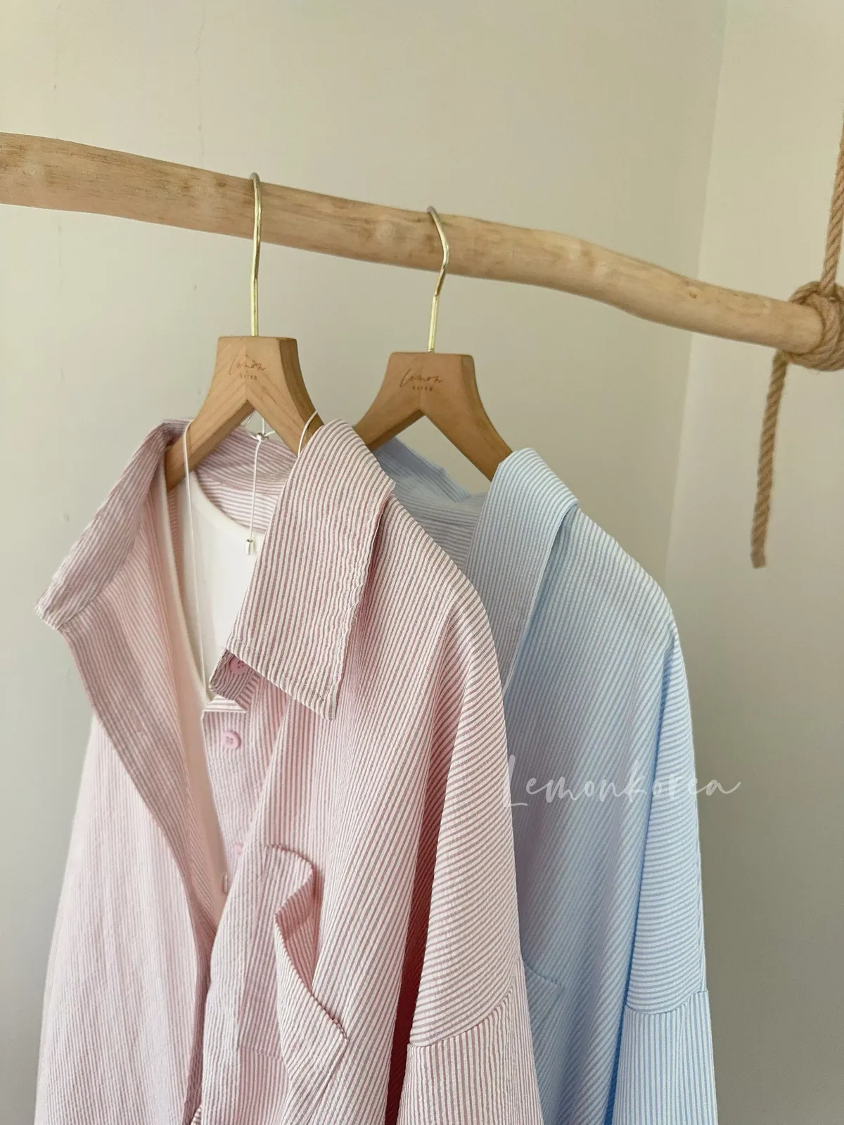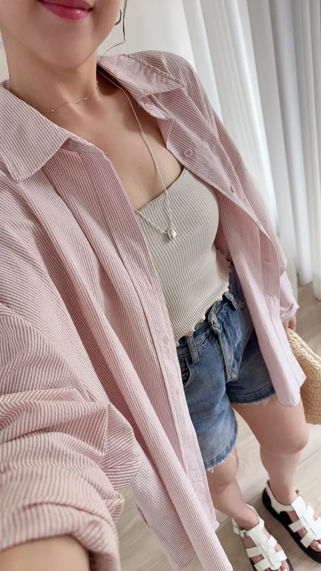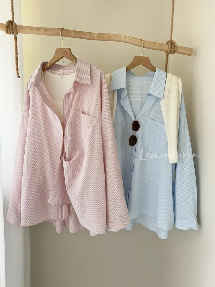 F35 私藏款直條紋單口袋慵懶襯衫 粉/藍